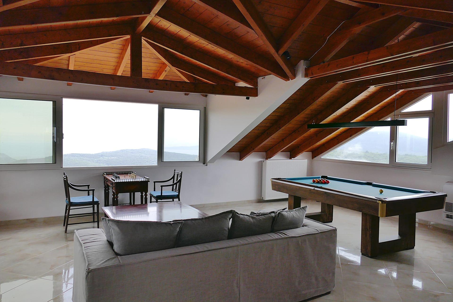 The atmosphere is enhanced by the fireplace, pool table, and game table, making it an ideal choice for every season of the year. Experience ultimate comfort and luxury in a space that blends elegance with cozy hospitality.